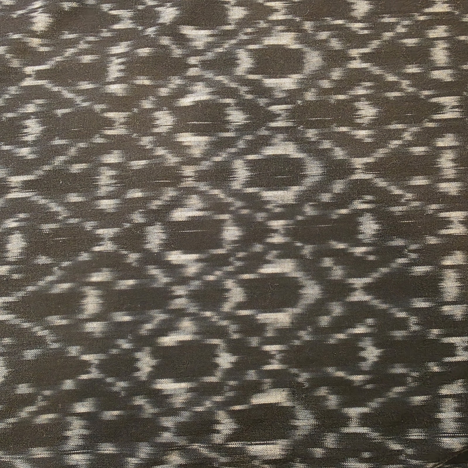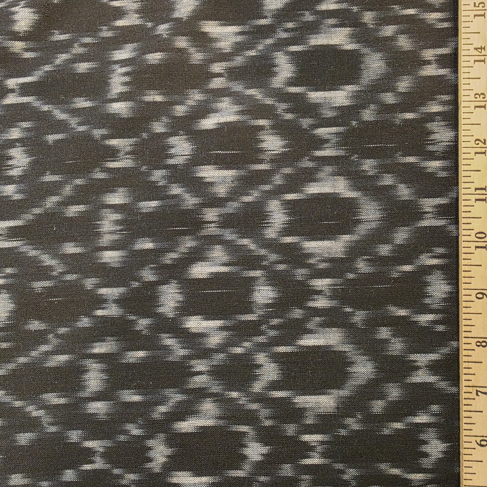 Ikat abstract diamonds in black and white. Weight is relatively light, and faintly semi-sheer against the light.