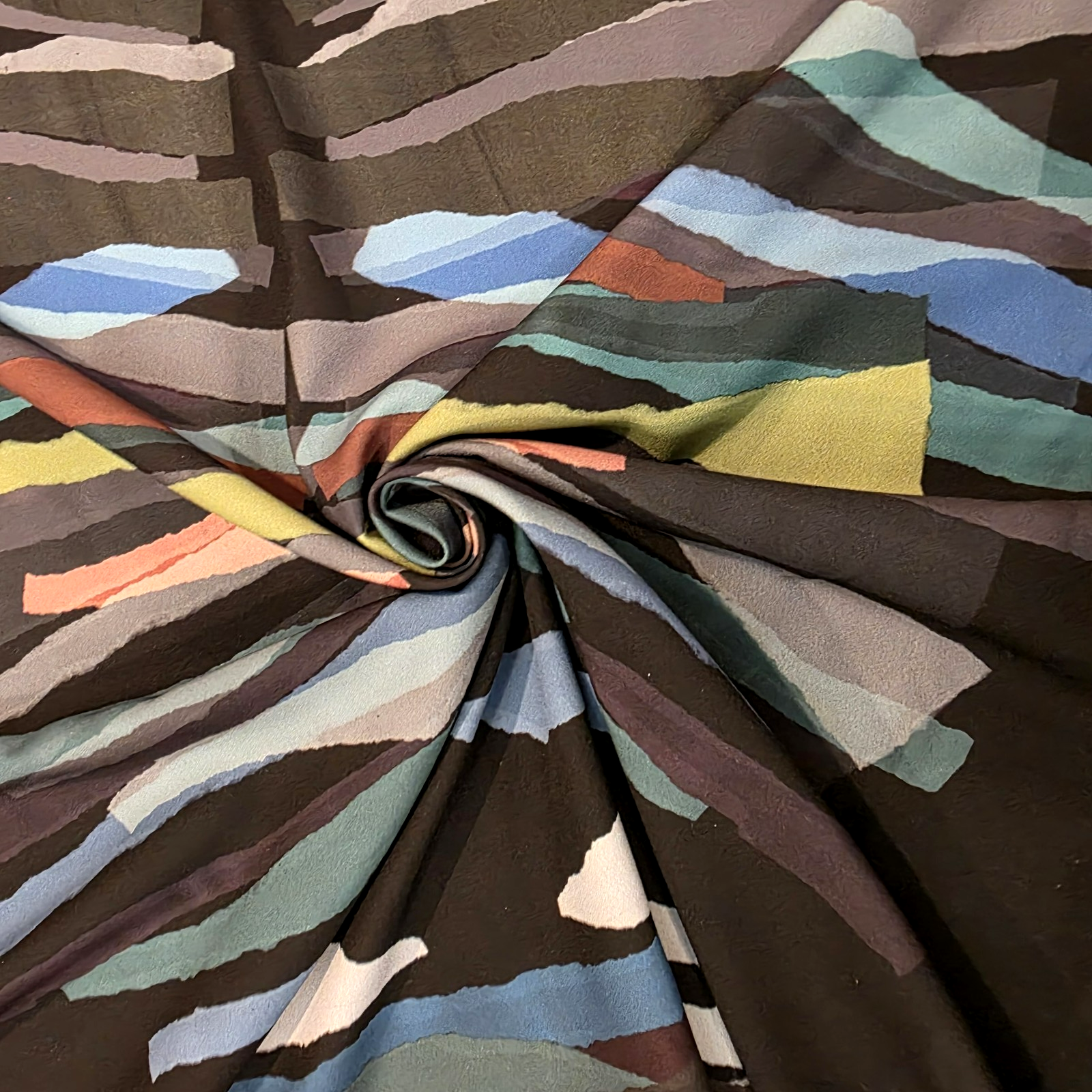 This is so cool and chic! Slashes of color on black adorn this polyester crepe de chine designer overstock from Italy! Ideal for blouses, tunics, dresses, and more!