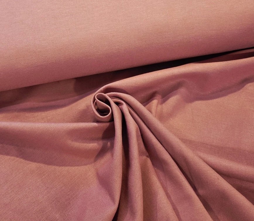 Beautiful soft pale rose pink linen-rayon blend shirting. A wonderful option for spring, summer, and autumn! Gorgeous as a blazer (add interfacing for a more tailored look), or as a shirt for men’s wear, or almost anything for women’s wear – this would be equally nice as a tailored shirt dress or casual pants! Nice light-medium weight, with a soft hand and lovely drape. Very slight ease stretch across the grain.