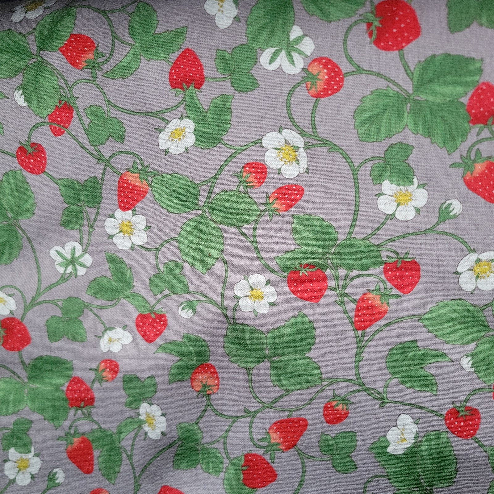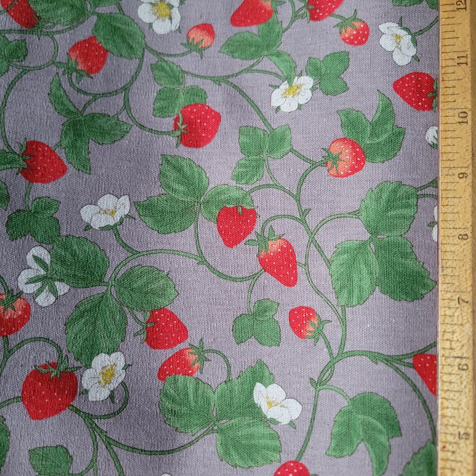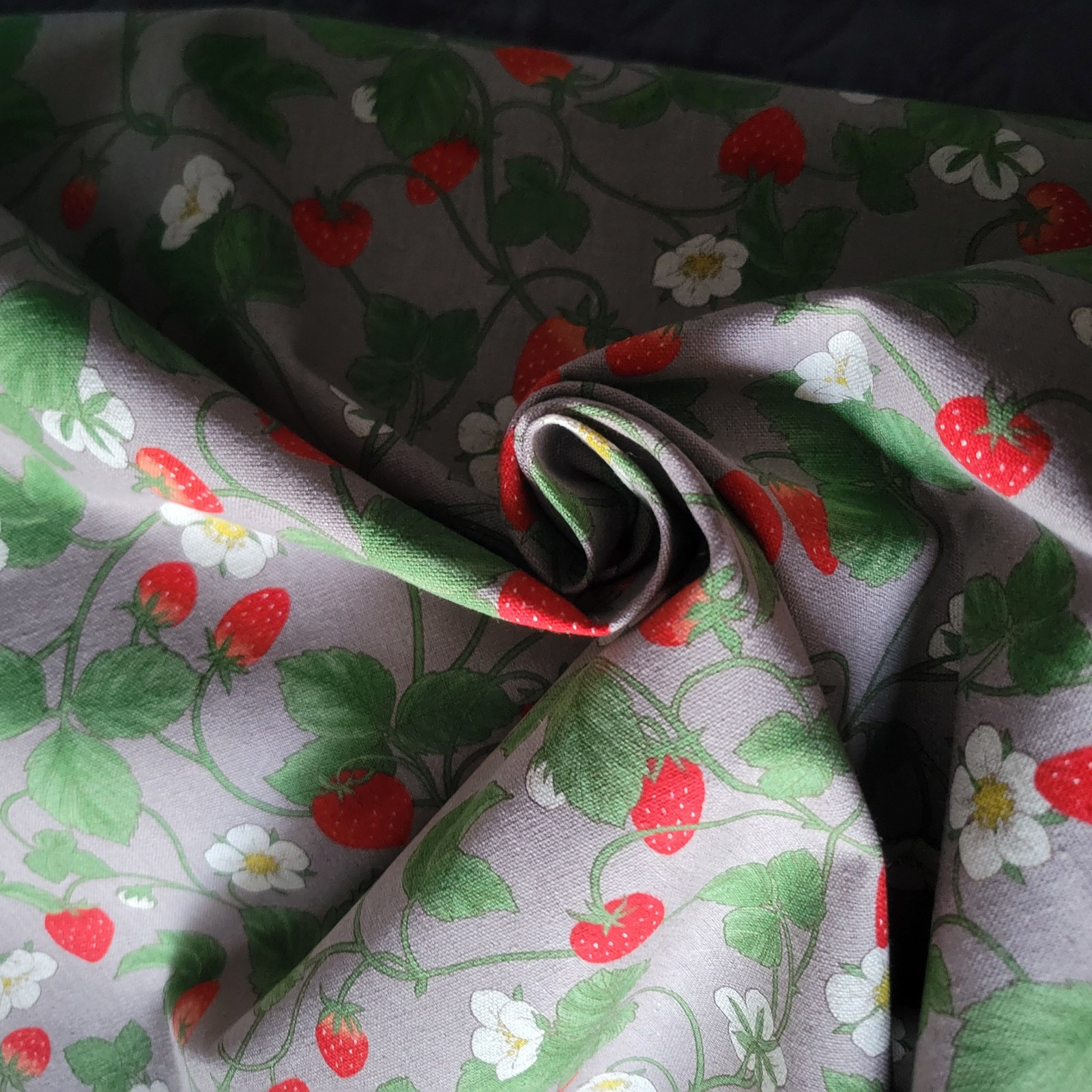 Summer Strawberries on Gray Japanese Cotton/Linen Light Duck Cloth. SO CUTE!