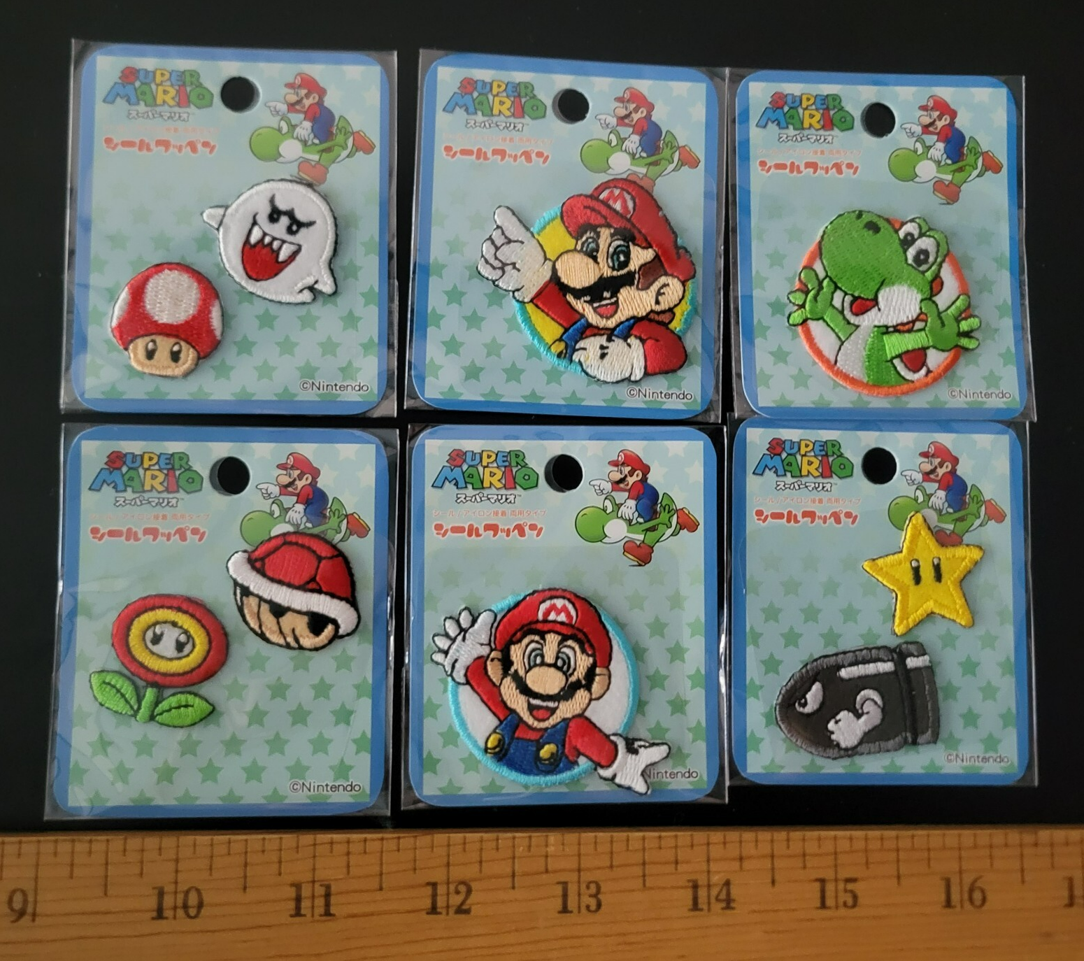 Official Nintendo Super Mario mini patches. SO ADORABLE!! THESE PATCHES ARE QUITE RARE IN THE US, and are something I picked up in Japan. Excellent quality, embroidered. Some consist of multiple separate pieces, you can place as you wish!